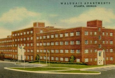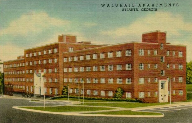 Atlanta developer Walter H. "Chief" Aiken opened the Waluhaje Hotel Apartment building on West Lake Avenue in northwest Atlanta in 1951.